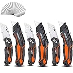 WORKPRO Folding Utility Knife, Quick-Change Box Cutter, Blade Storage in Handle with 5 Extra Blades Included
